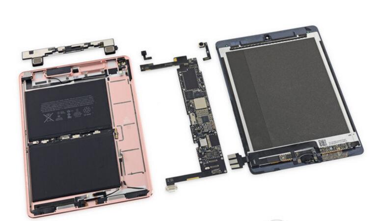 拆解结果显示,iPad Pro 9.7的大多数内部空间还是留给了电池,它的27.91瓦时电池比Air系列的27.62瓦时稍大,但比12.9英寸Pro的38.8瓦时要小得多。